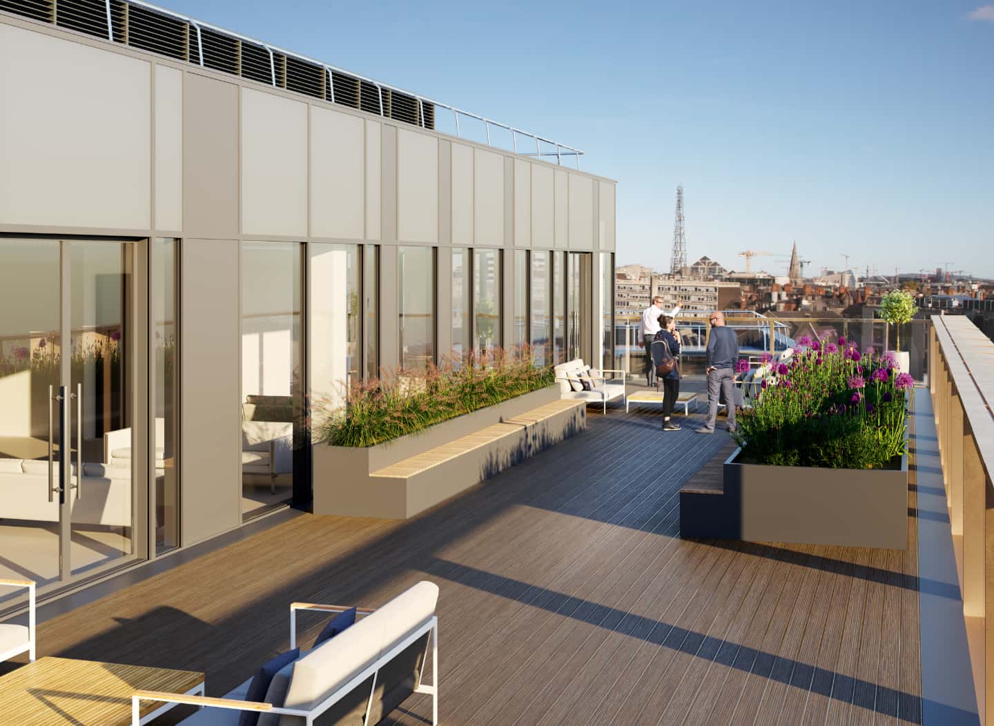 Rich in biodiversity, the garden is landscaped with tiles replicating designs taken from the church interior. This space gives occupiers a social meeting place with a café, gallery, gym and juice bar alongside the Sky Bar in the Radisson Blu Royal Hotel and new Conference Centre.