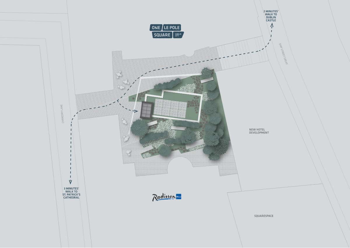 Located on Ship Street Great, this new office building and its eponymous square create a new walkway within the Chancery Lane quarter, taking visitors on a historical journey from Dublin Castle to St. Patrick’s Cathedral and Christchurch.